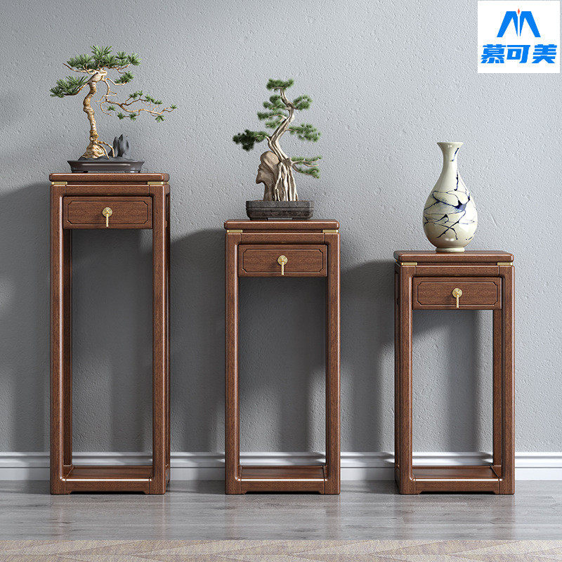 新中式实木花架胡桃木室内收纳窗台置物架阳台木质花盆架客厅架子