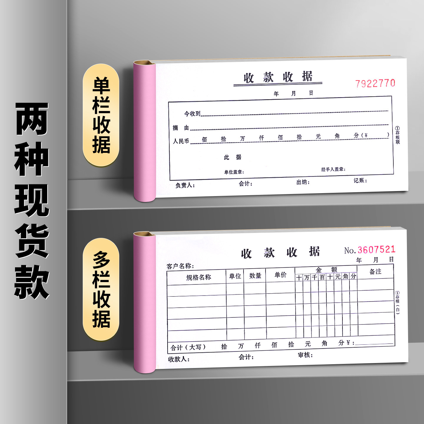 50本收据二联单栏多栏收款单据无碳复写收据本收据单送货单收据票据本印刷定制本合同订制印刷定制单本册