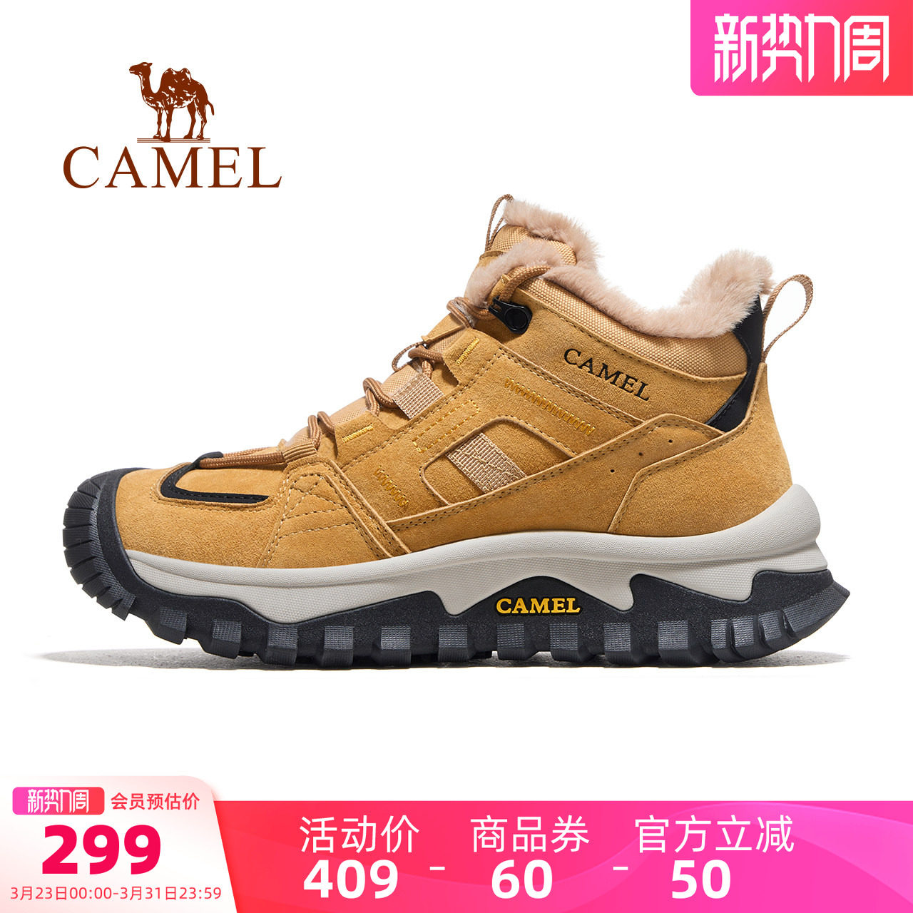骆驼男鞋高帮鞋冬季新款加绒加厚保暖雪地靴男户外徒步登山棉鞋女