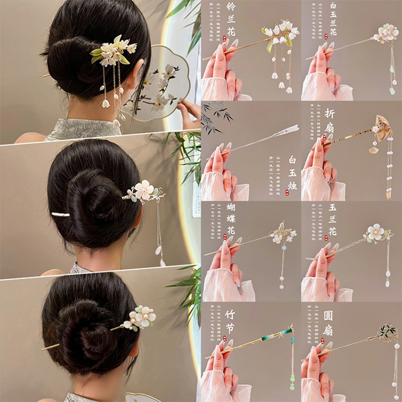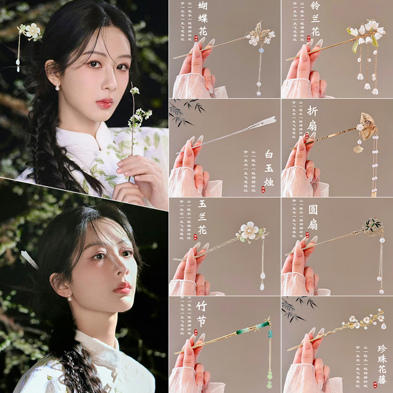 流苏新中式古风发簪女高端盘发钗簪子步摇2025新款国风发钗子蝴蝶