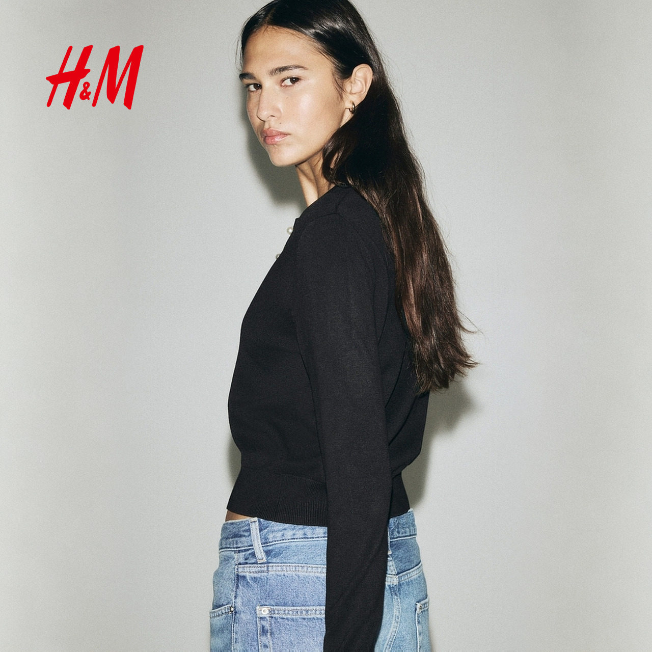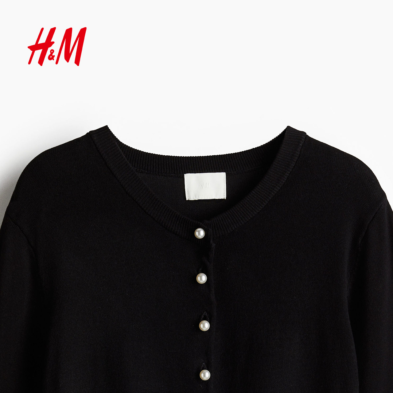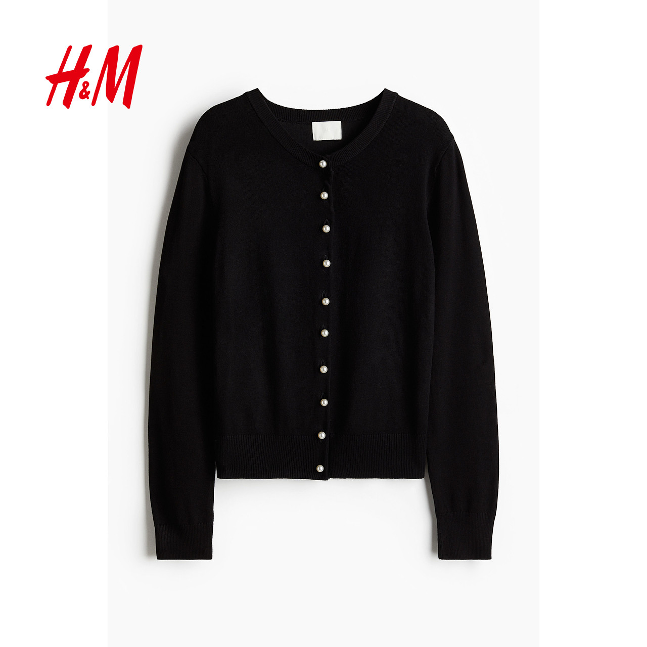 HM女装毛针织衫春季打底衫外搭开衫薄款圆领针织休闲外套1237776