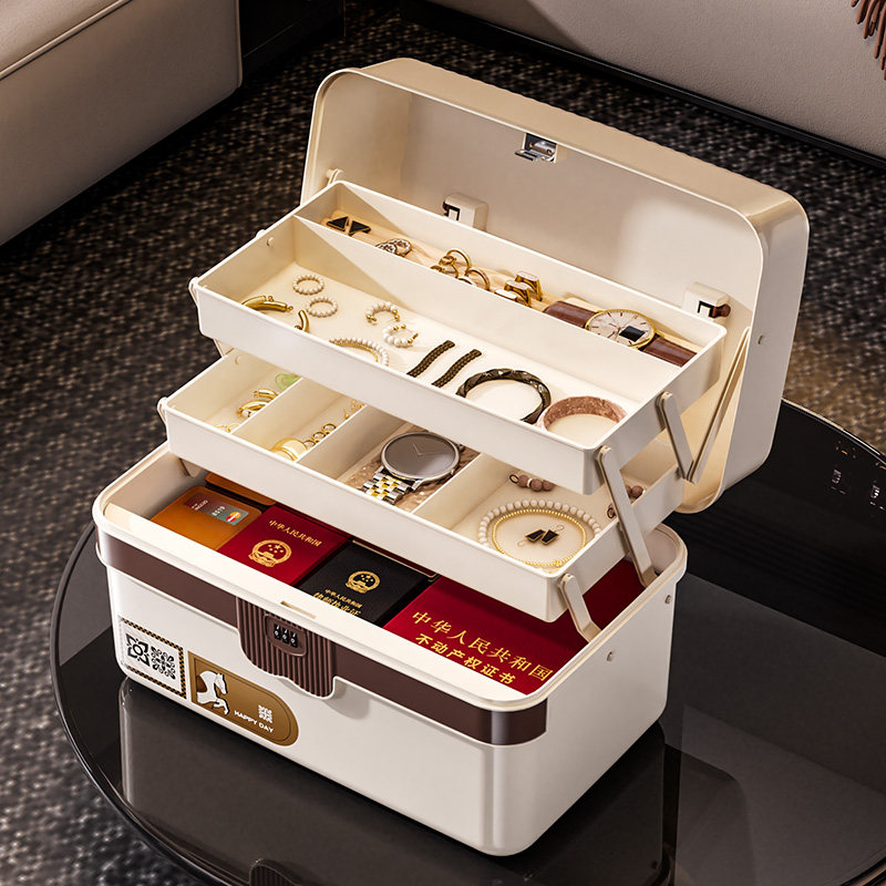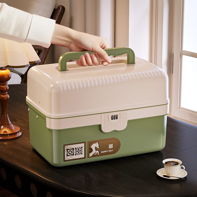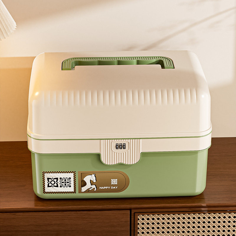 坂崎带锁收纳箱家用贵重物品储物箱分层手提医药箱车载密码收纳盒