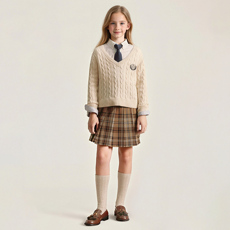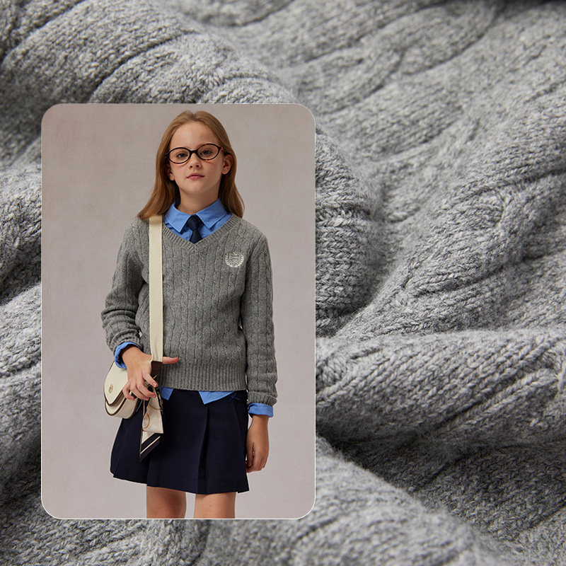 eland kids衣恋童装女童针织衫秋冬学院风V领刺绣绵羊毛混纺毛衣