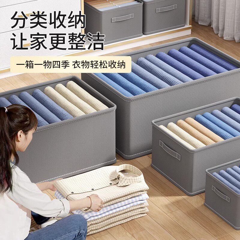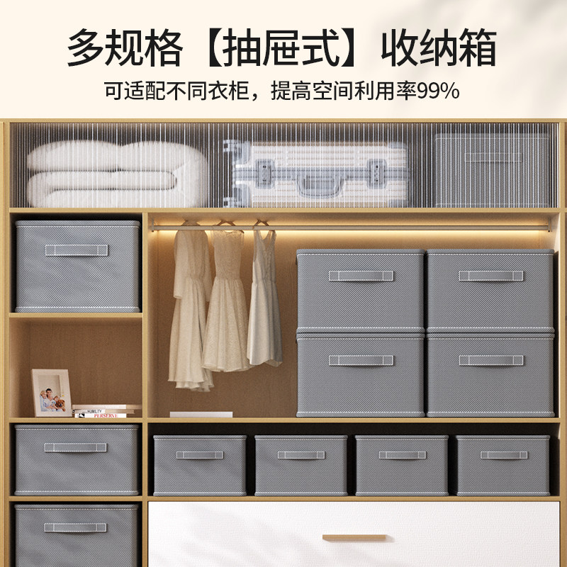 拍1发4衣服收纳筐神器布艺装衣物衣柜分层收纳箱家用框裤子整理盒