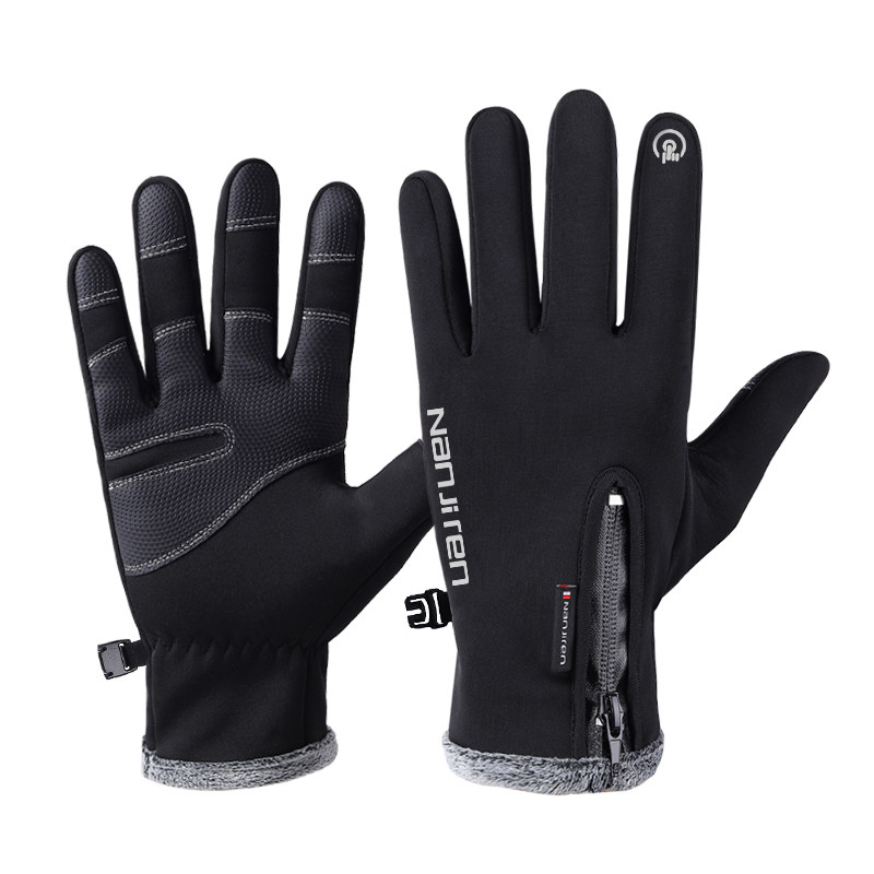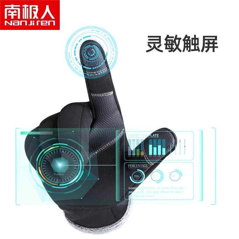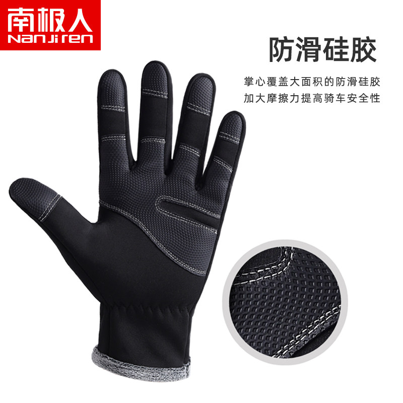 南极人保暖骑行手套男冬季户外防寒防水触屏漏二指手套加绒摩托A