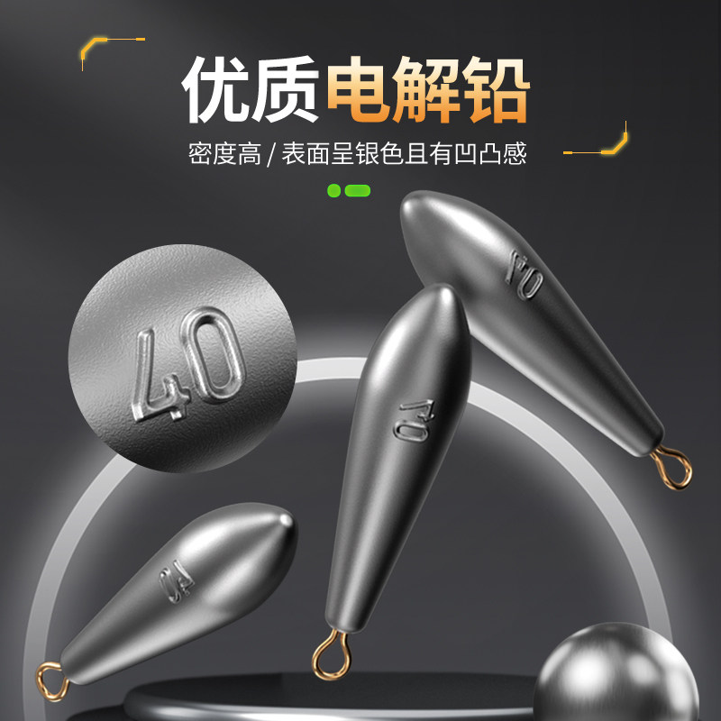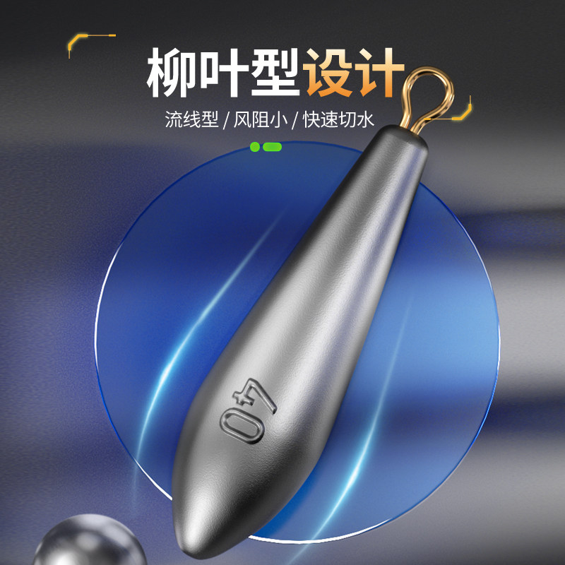 远投柳叶型水滴型铅坠串钩铅坠路亚吊坠带环海竿抛竿铅坨钓渔具