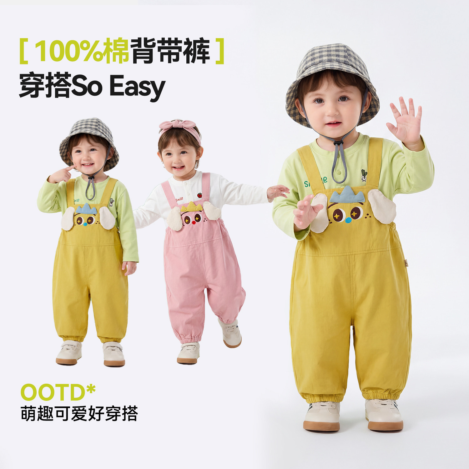 【纯棉】嘟嘟家宝宝裤子春秋男童背带裤女童休闲长裤儿童可爱春装