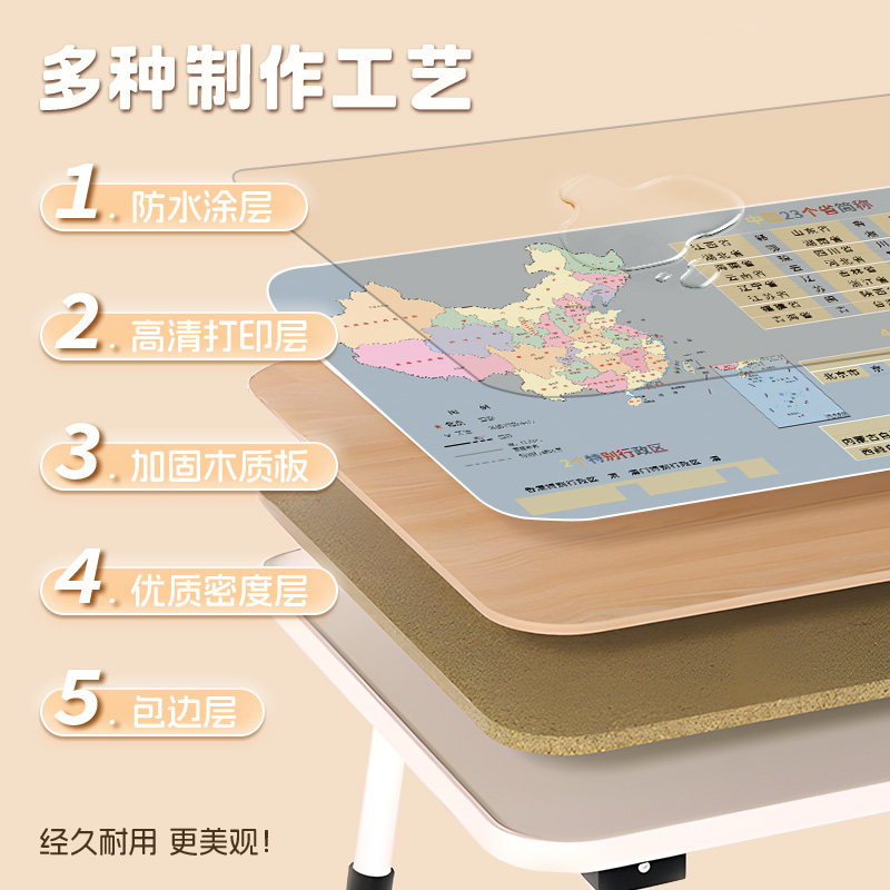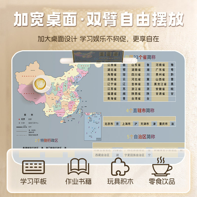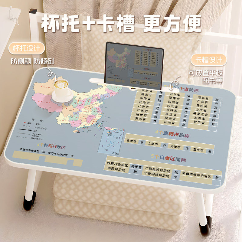 中国地图床上小桌子儿童学习桌可折叠家用卧室飘窗坐地写作业小桌板学生宿舍上下铺神器笔记本电脑桌膝上桌