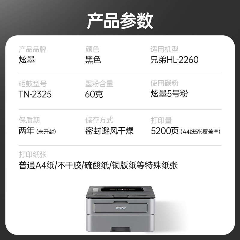 【原装品质】兄弟2260粉盒 炫墨适用兄弟2260d硒鼓HL-2260/2260D黑白激光打印机墨粉盒TN-2325墨盒DR2350鼓架