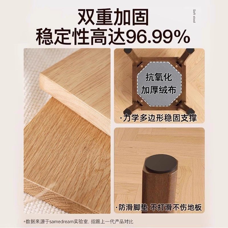 实木凳子家用可叠放软包板凳客厅木头矮凳简约现代小方凳餐桌椅子
