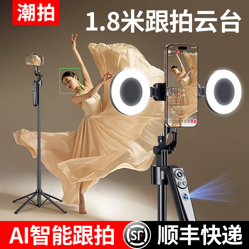 潮拍智能AI跟拍云台自拍杆神器人脸追踪全自动360度旋转手机支架2025新款旅游便携直播设备全套落地三脚架
