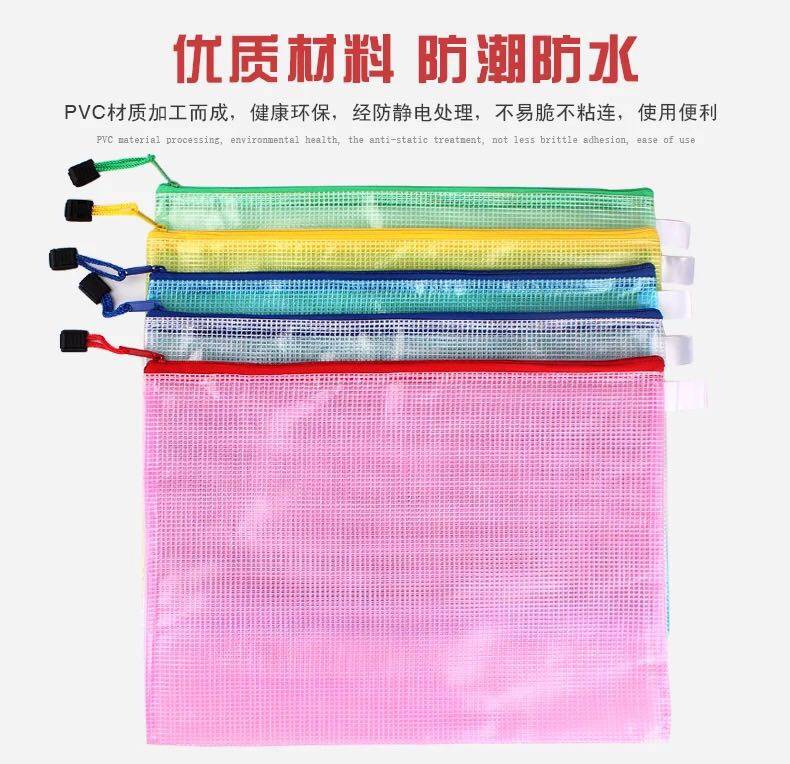 A4文件袋透明网格拉链袋拉边袋办公档案袋塑料防水资料袋学生袋