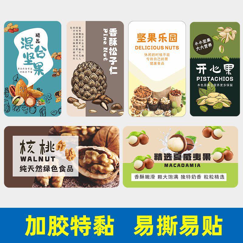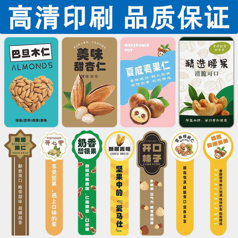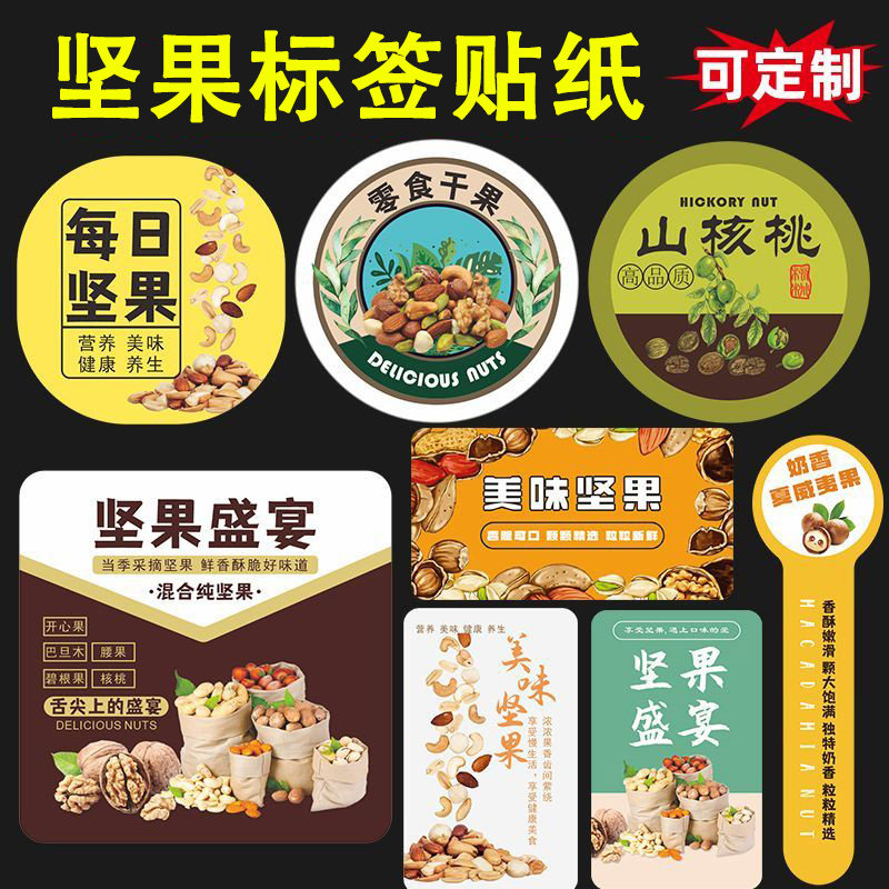 定制l白杏仁坚果贴纸ogo二维码包装罐袋标签夏威夷果碧根果核桃开心果巴旦木瓜子松子榛子腰果花生不干胶订做
