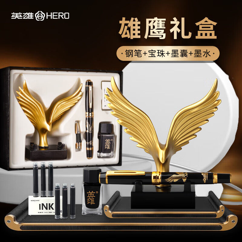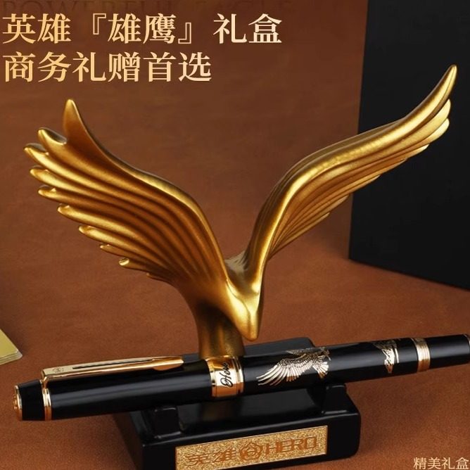 【纪念礼物】英雄钢笔成人专用墨水礼盒商务男士高档签字笔雄鹰笔架摆件送领导老师生日伴手年会礼品定制刻字