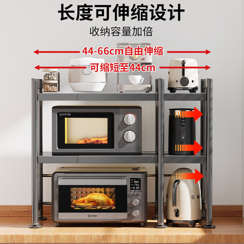 微波炉置物架厨房台面电饭煲一体多功能伸缩支架烤箱收纳架子双层