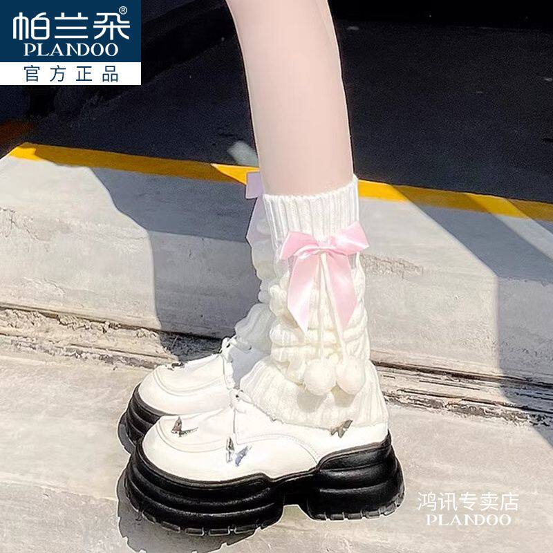 Lolita粉色袜套女秋冬jk腿套加厚保暖堆堆袜套蓝色白色蝴蝶结中筒