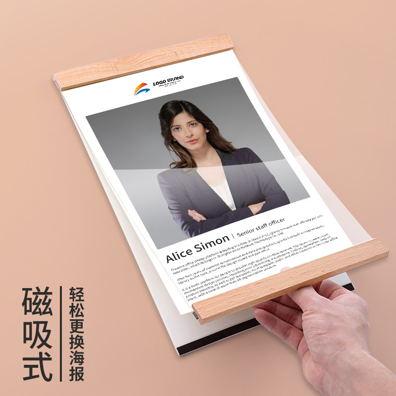 磁吸相框粘贴式教师简介教练框有机玻璃框架挂墙展示牌海报免打孔