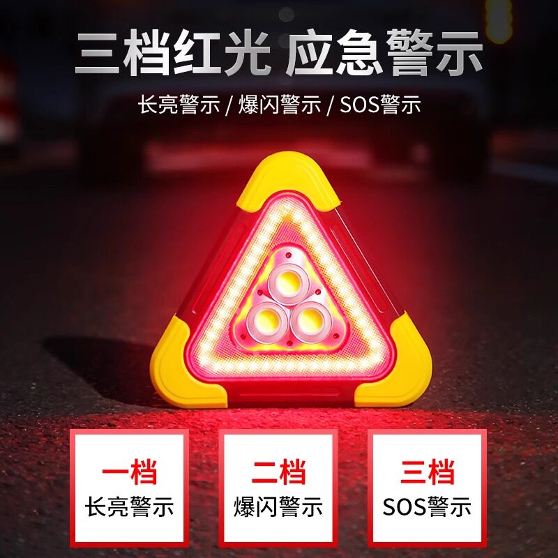三角架警示灯LED多功能汽车应急灯太阳能车载用品警示牌充电爆闪