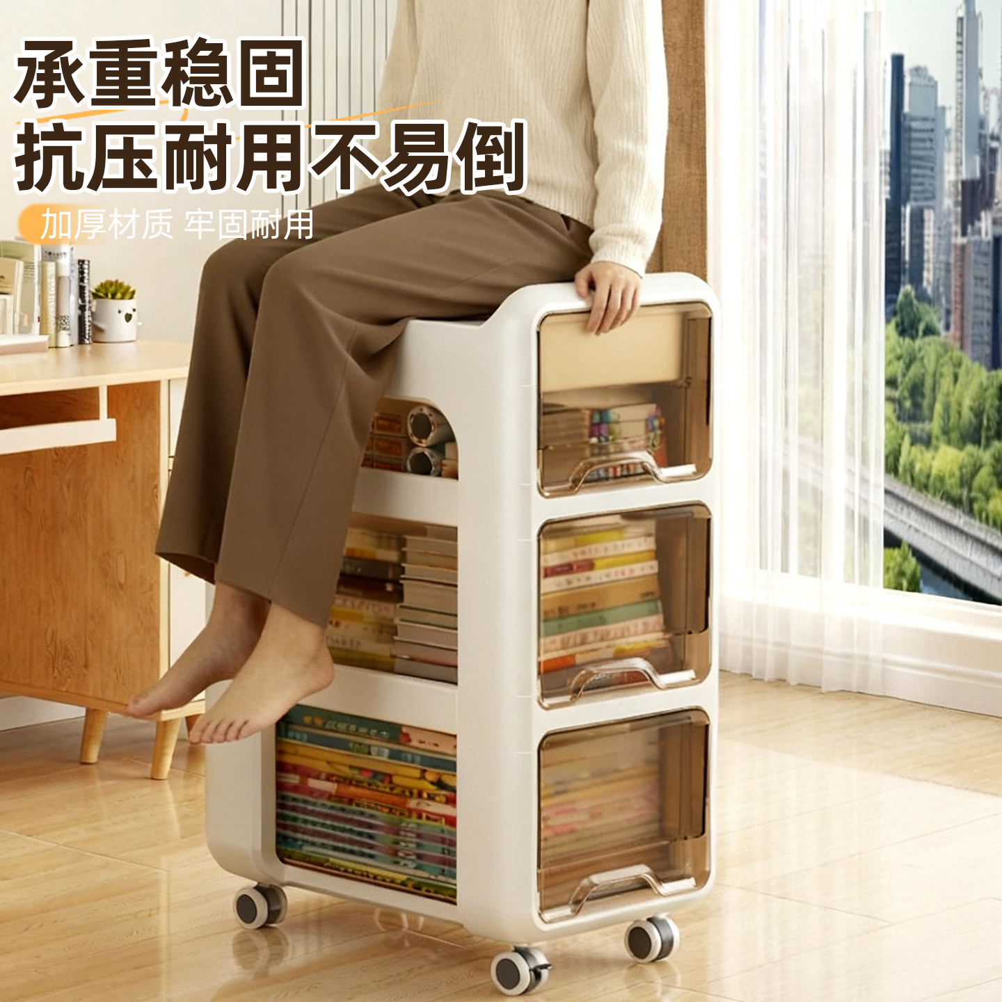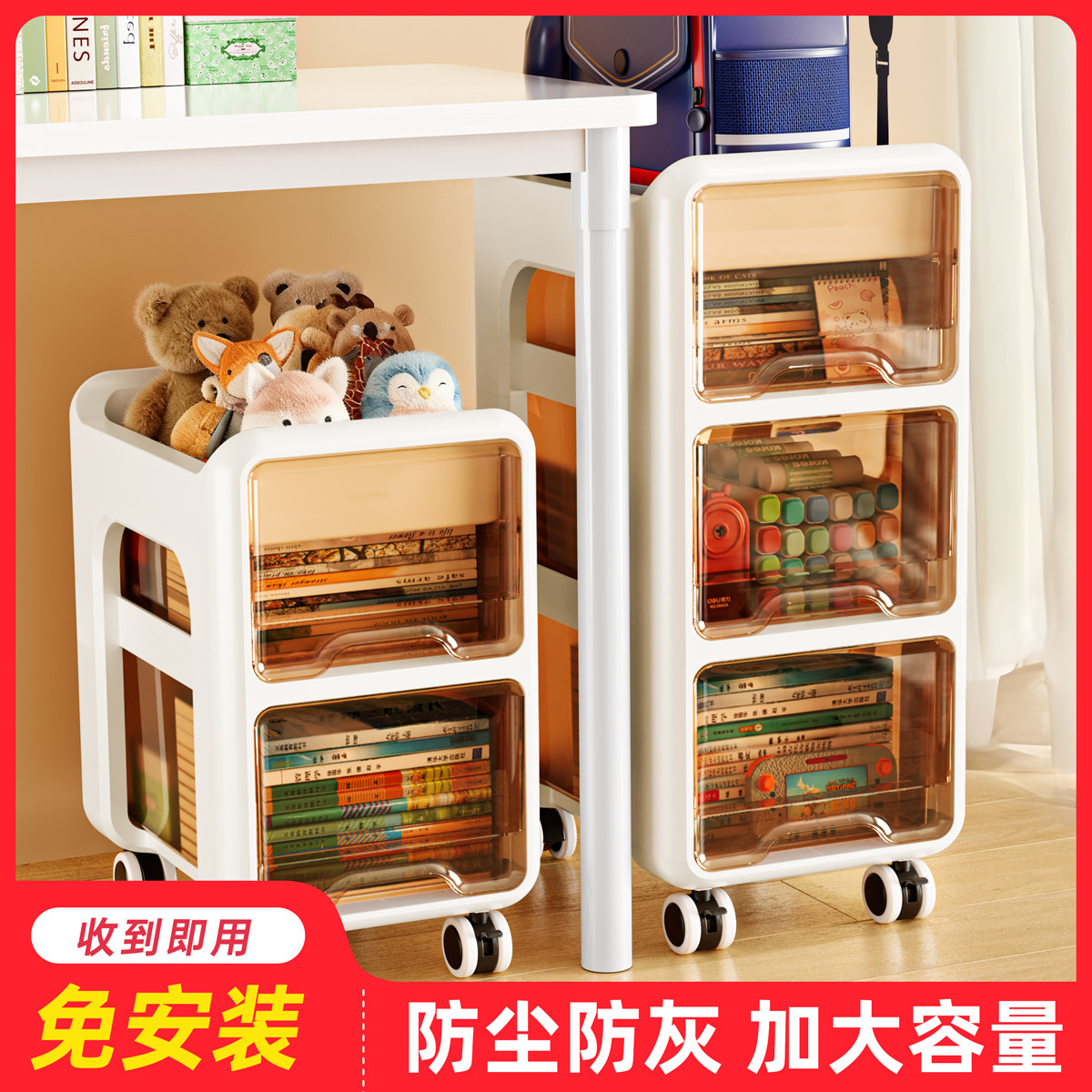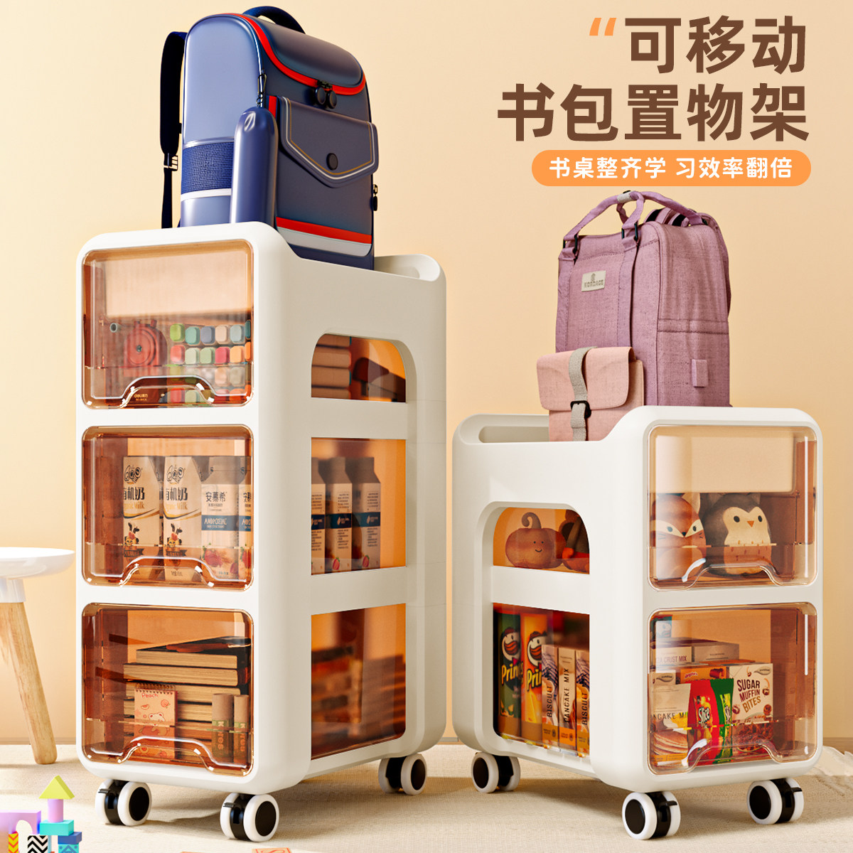书包置物架可移动小推车收纳架零食置物架柜子带轮移动桌下零食架