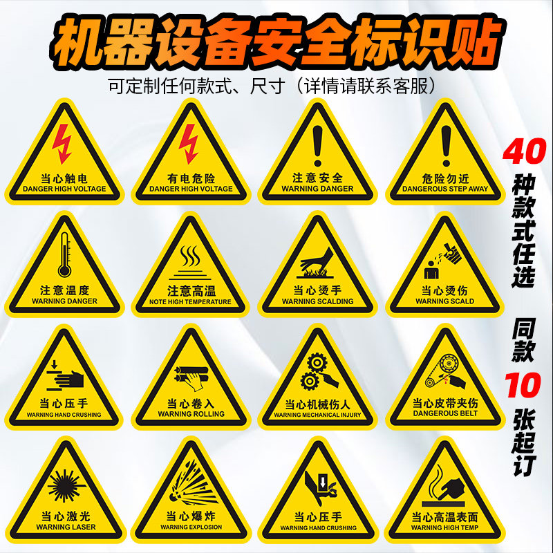 当心激光警示贴注意安全当心压手危险提示牌3MPVC胶片贴机器设备安全标志标识警告牌标识不干胶标签贴纸QF款
