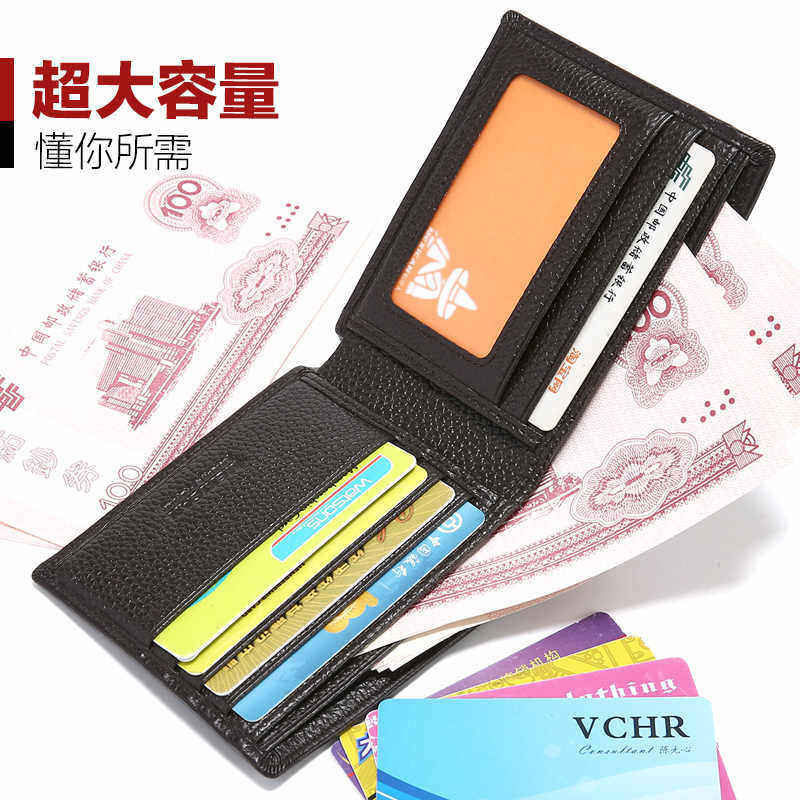 【真皮】皮尔卡丹男士钱包真皮短款送男友老公礼物牛皮驾驶证皮夹