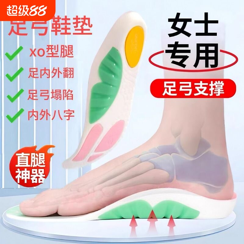 女士专用款足弓支撑鞋垫医用足底筋膜炎专用扁平足内八字矫直腿型