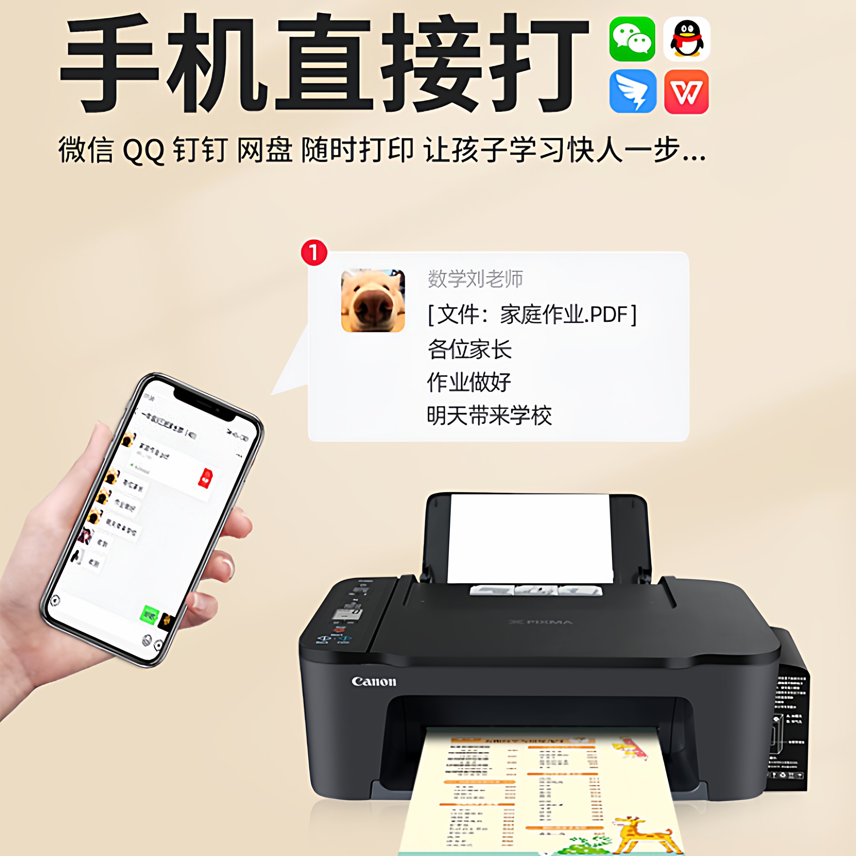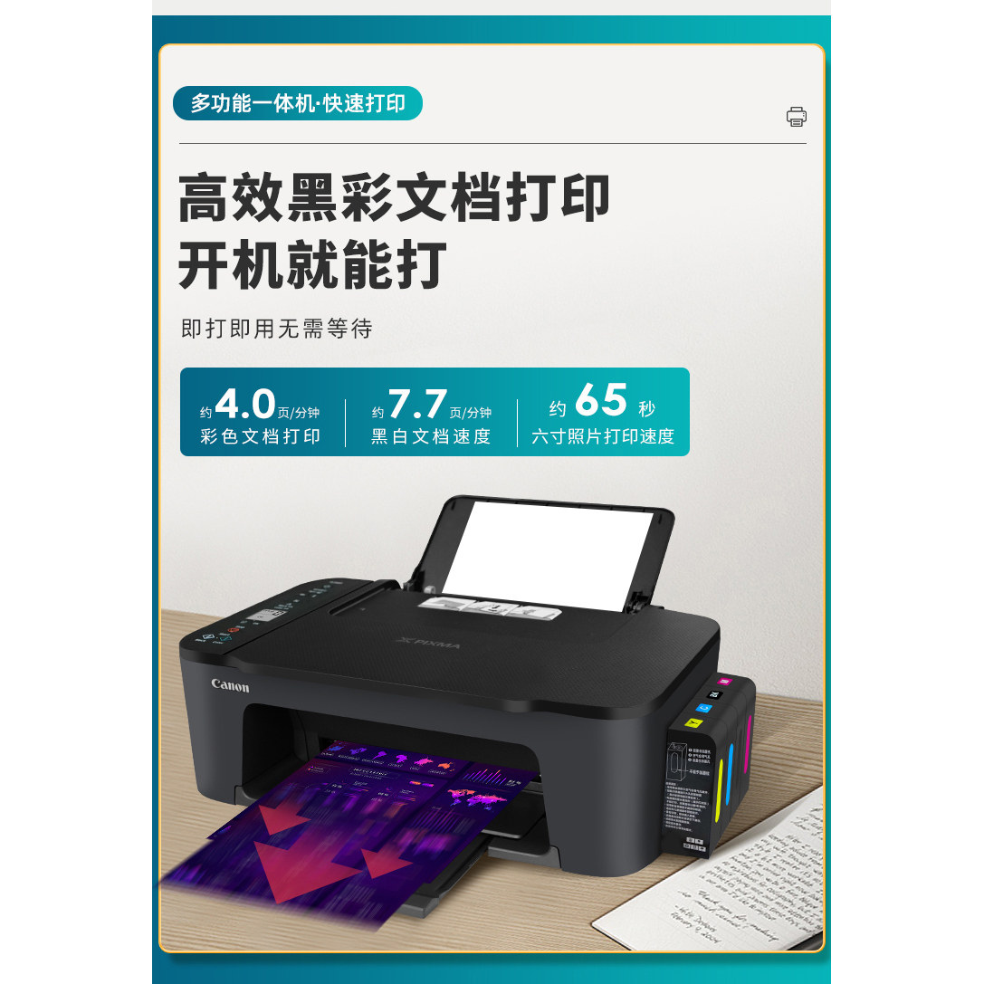 佳能3380彩色喷墨一体机打印机复印扫描家用小型手机无线连供墨仓
