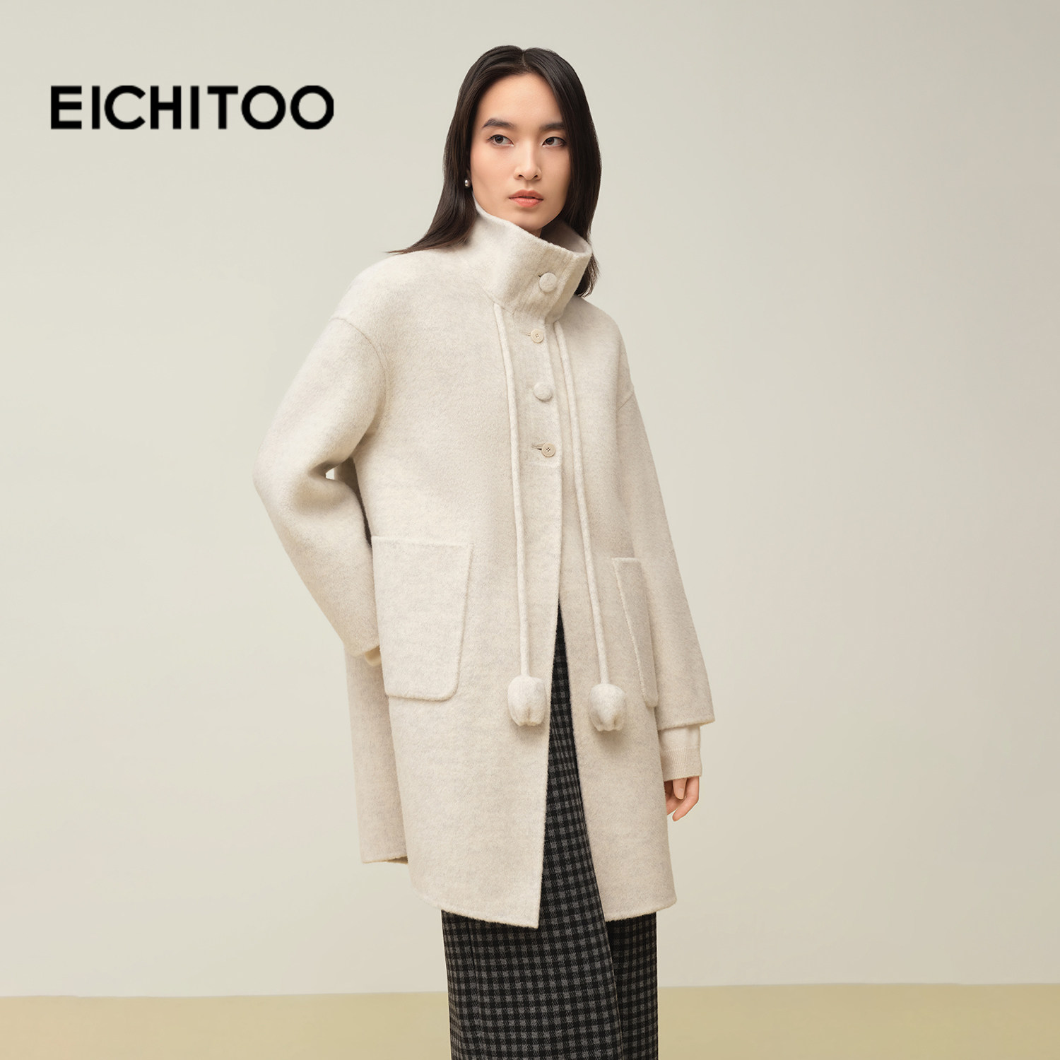 米白混色减龄,领型可立可翻