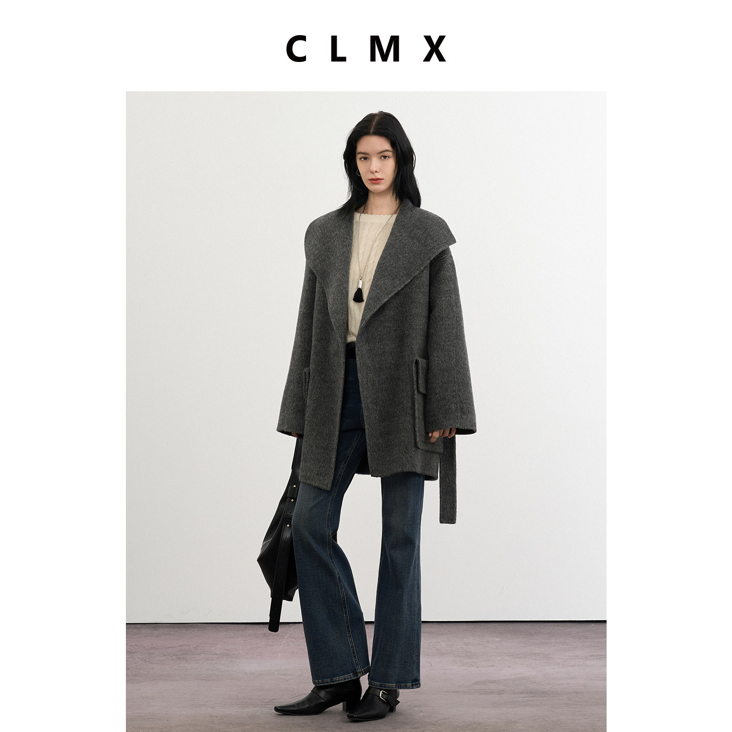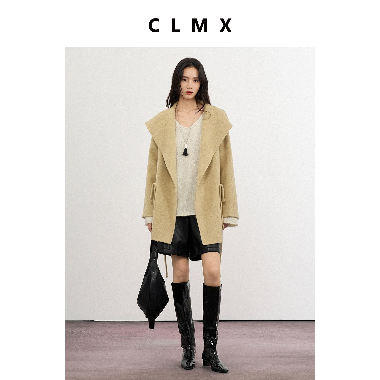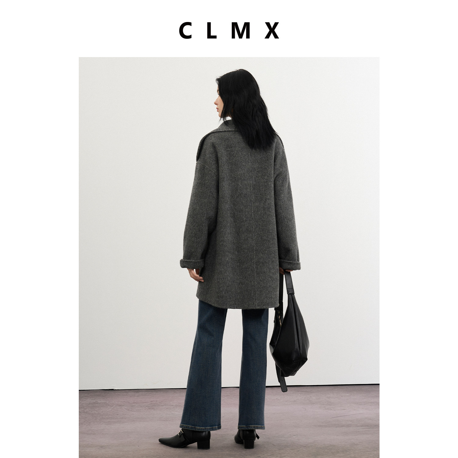 CLMX翻领大贴袋双面呢外套桑蚕丝牦牛绒面料秋冬通勤外套上衣女