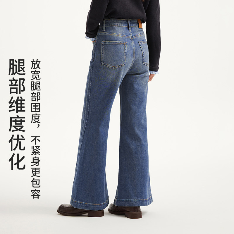 热风2026年春季新款女士阔腿喇叭牛仔裤经典复古高腰时尚休闲长裤