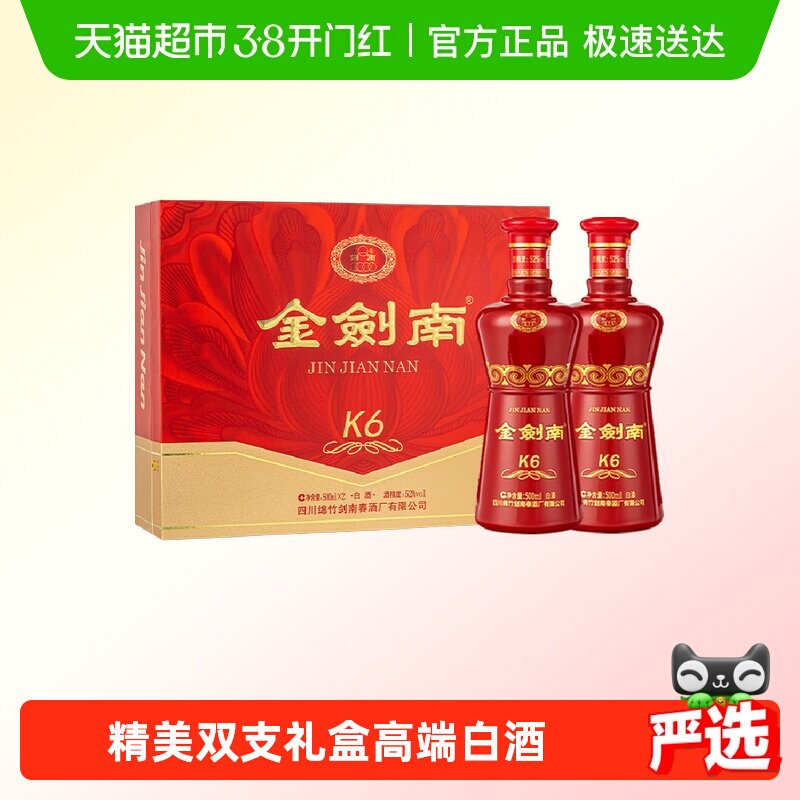 剑南春金剑南K6双支礼盒52度 500ml*2瓶白酒礼盒装