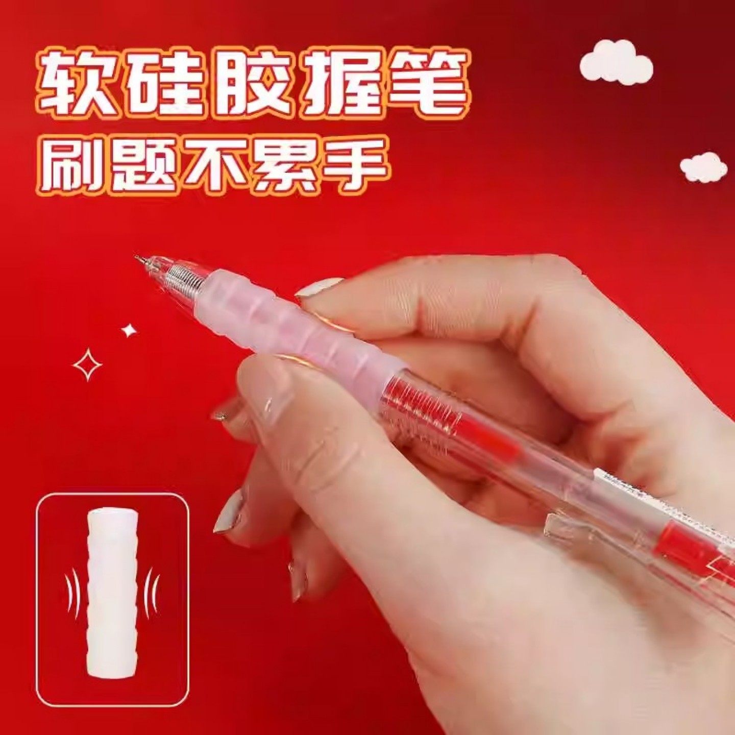老师批改作业专用云握红色中性笔学生红笔教师速干按动笔芯ST头