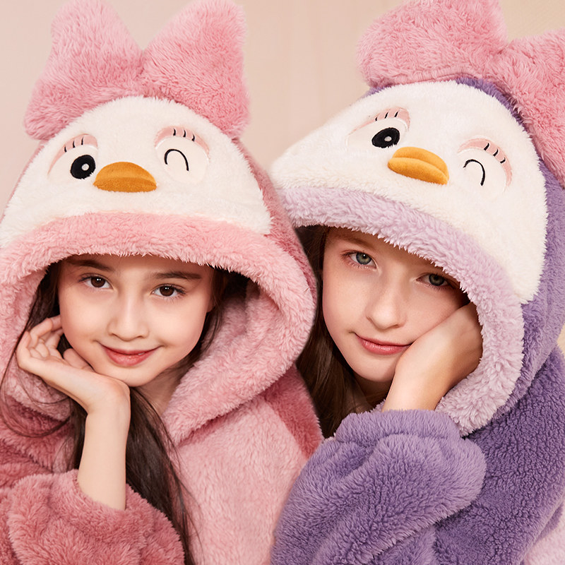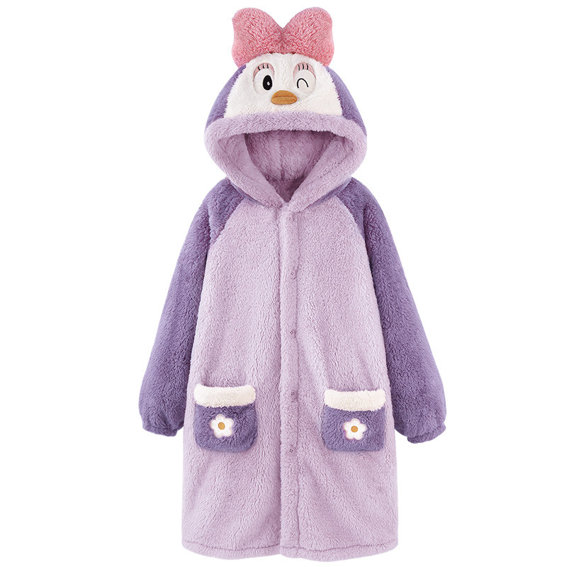 a类儿童吸水浴袍长款加厚中大童家居服珊瑚绒卡通可爱睡袍秋冬季