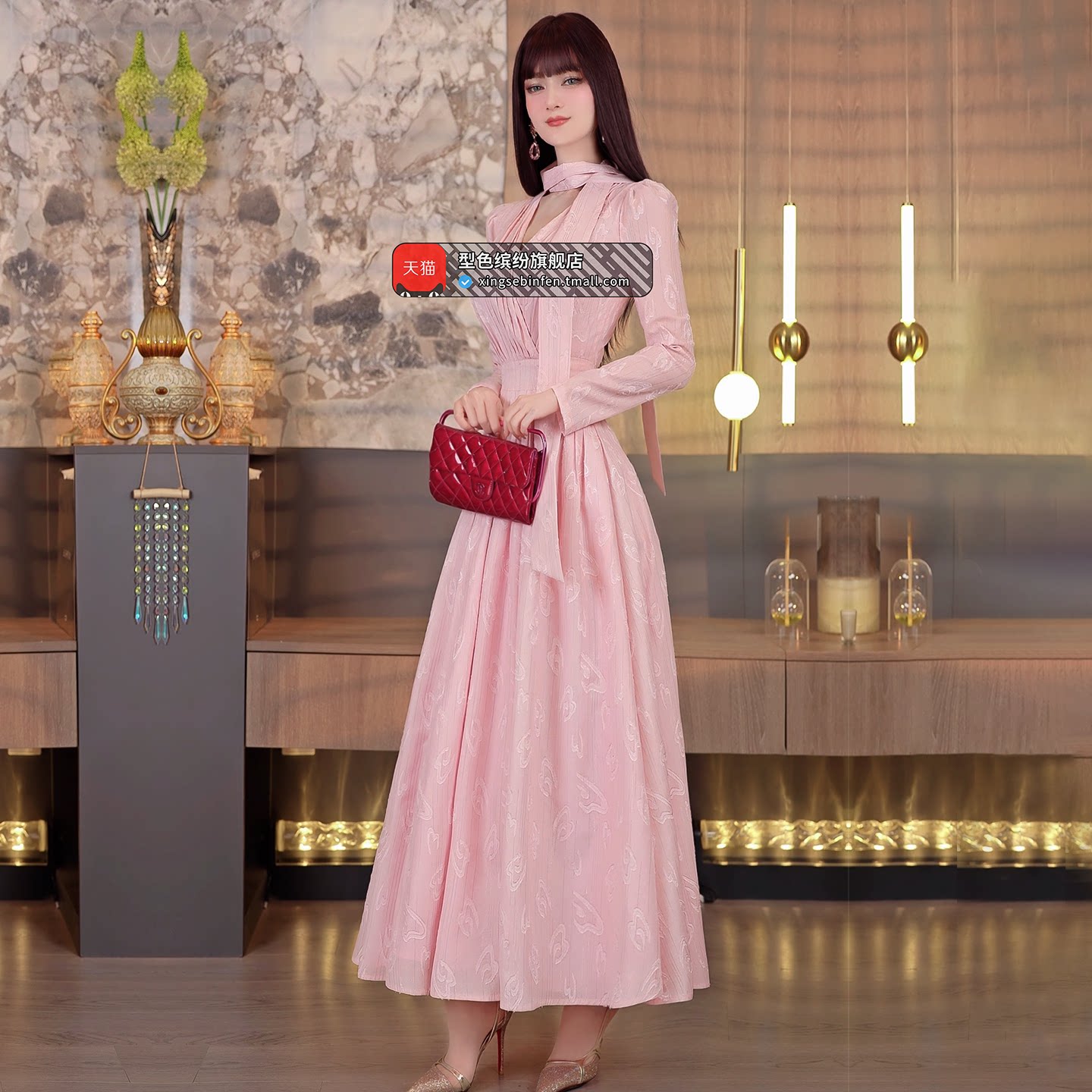 型色缤纷早春气质减龄连衣裙2026新款度假风大摆过膝及脚踝长裙