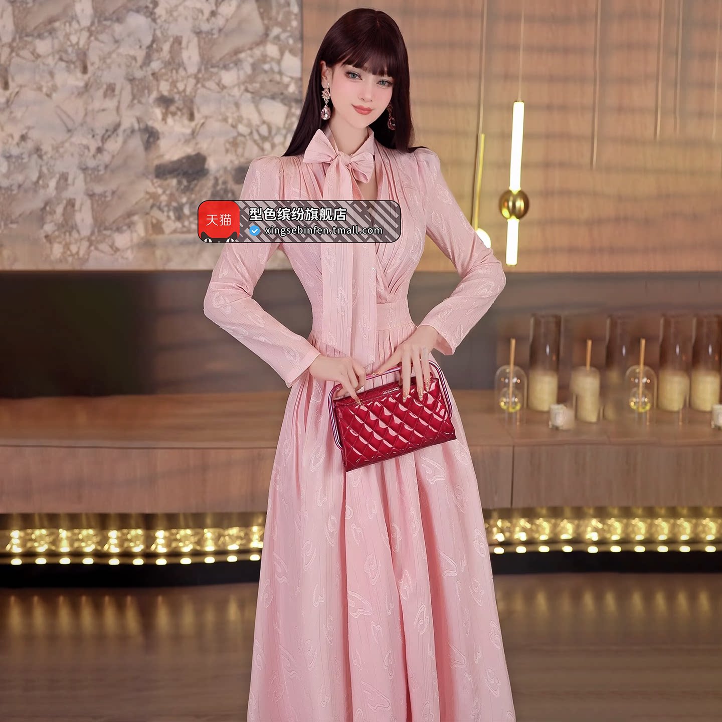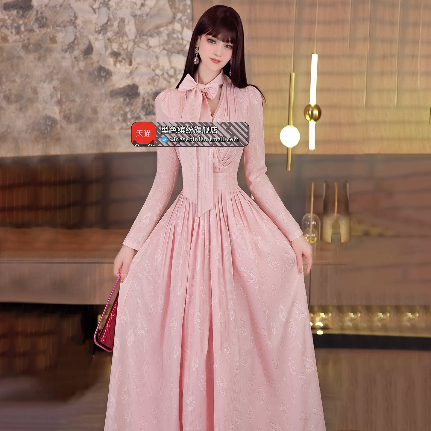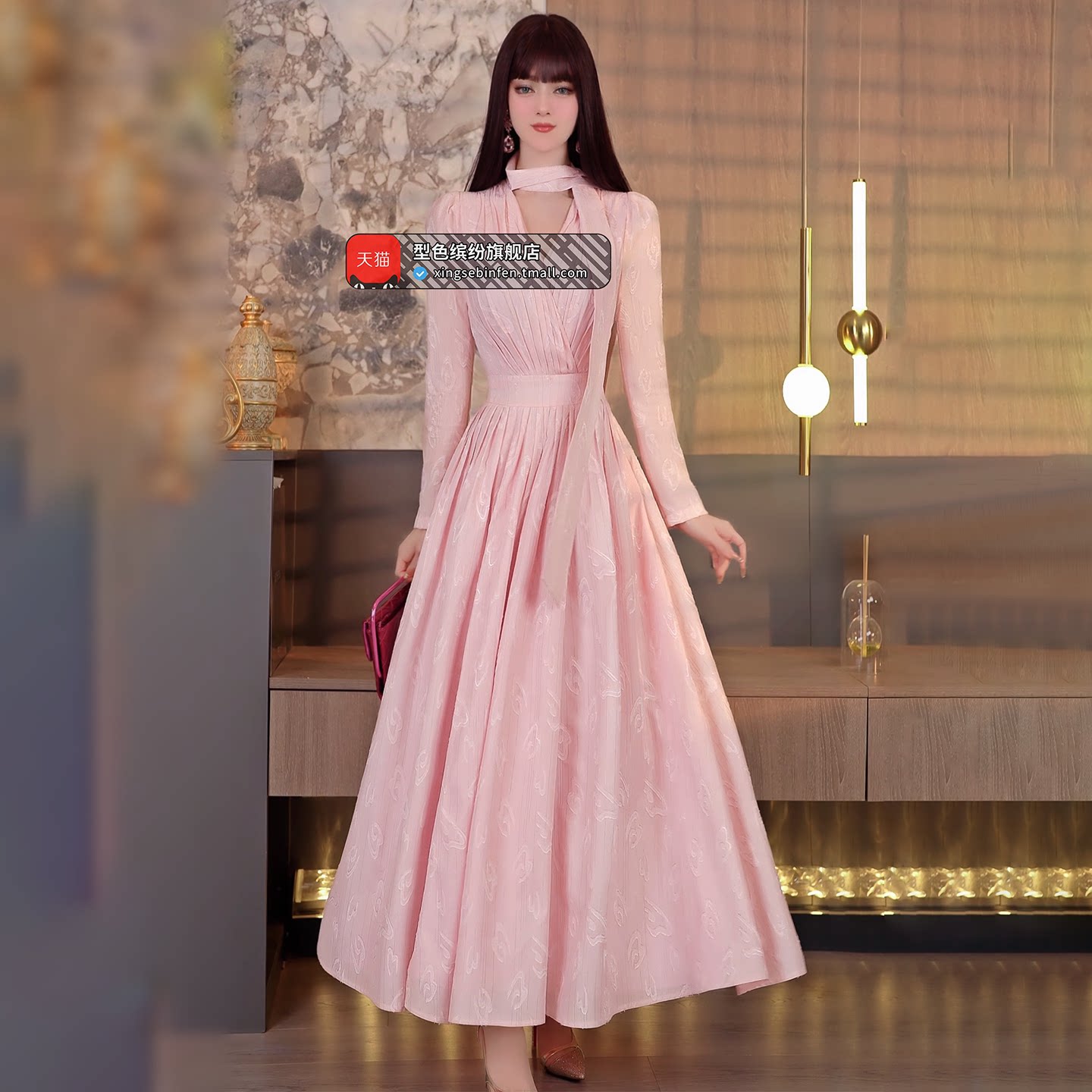 【papi同款】半练带胸垫吊带裙纯欲气质挂脖连衣裙黑裙子粉色长裙