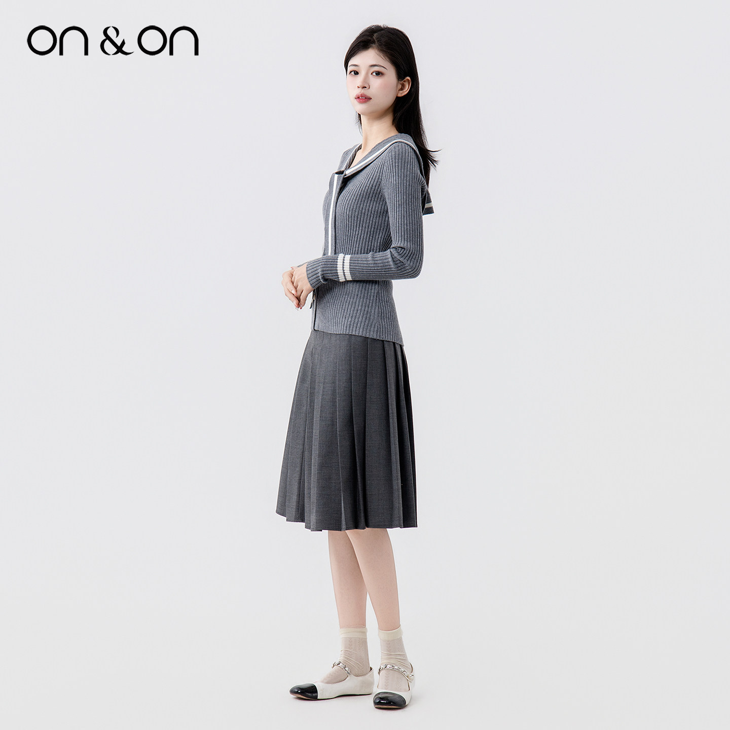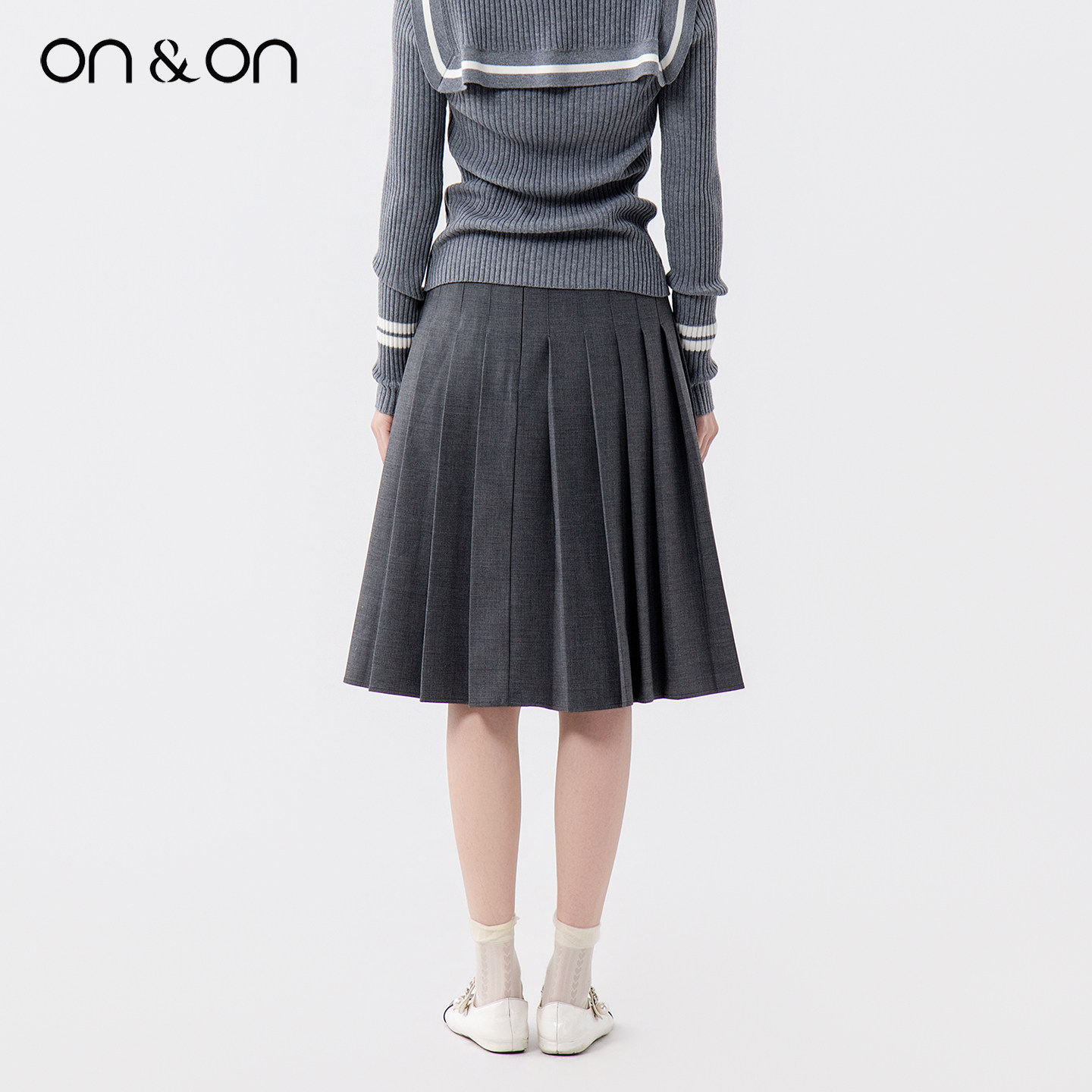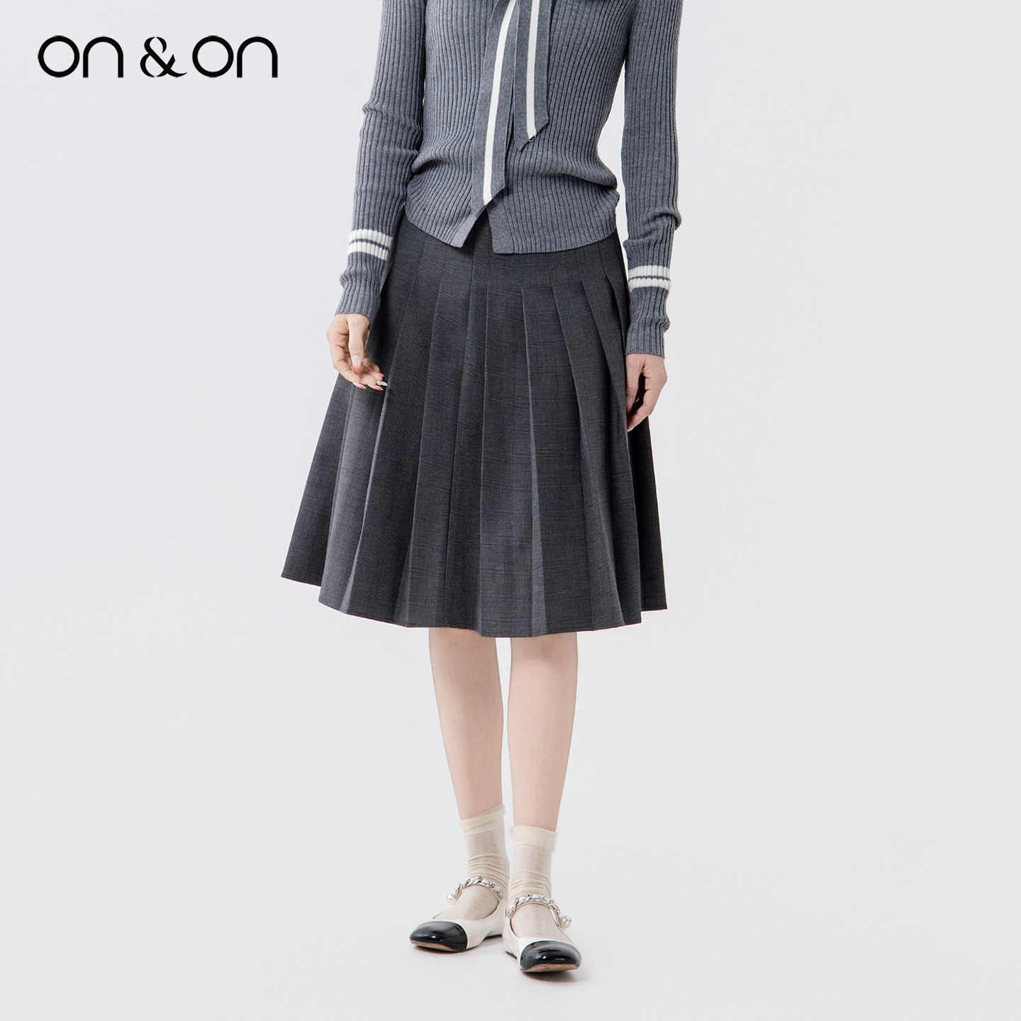 ON&ON/安乃安2026春季新款韩系高腰松紧时尚百搭学院风百褶半裙