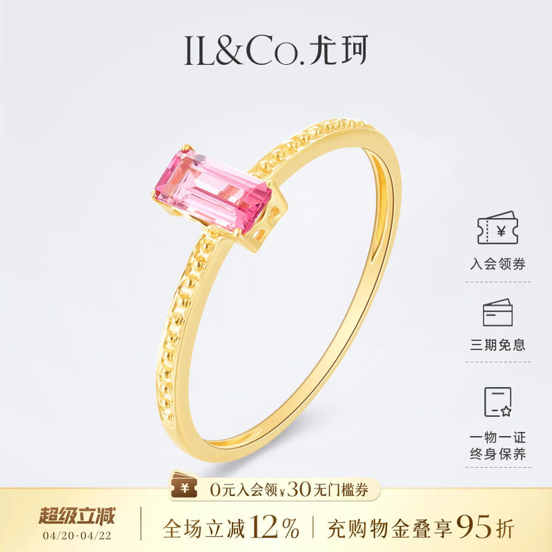 ILCO尤珂 红18K金天然彩色宝石戒指复古钻石镶嵌粉碧玺彩宝女款戒