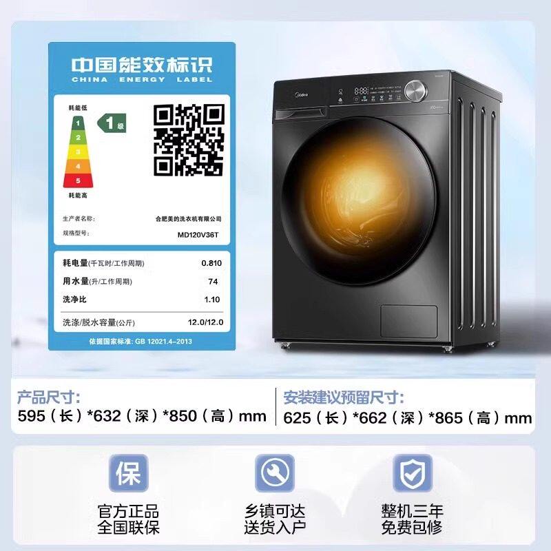 美的滚筒洗衣机全自动家用12kg10公斤洗脱洗烘一体大容量官方旗舰