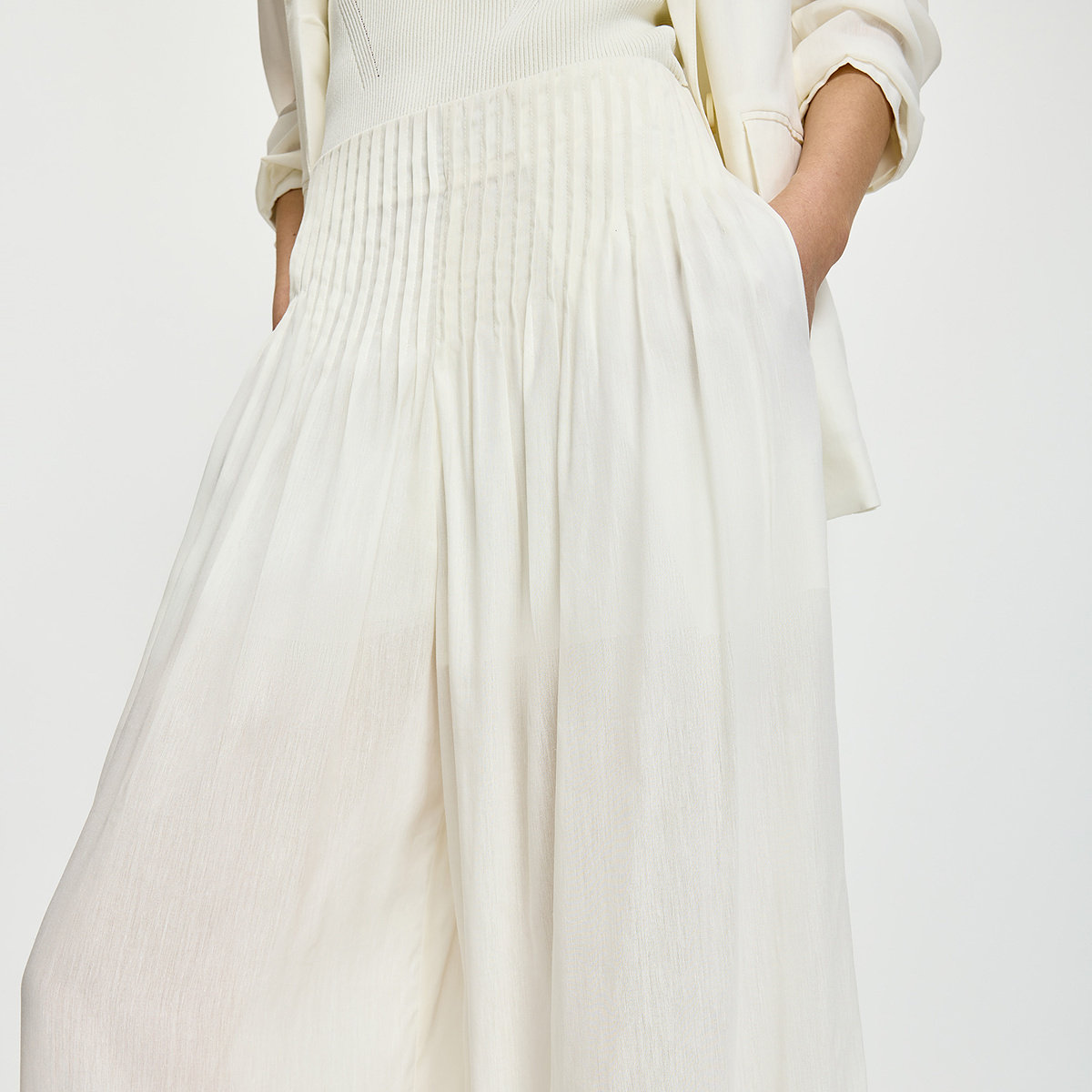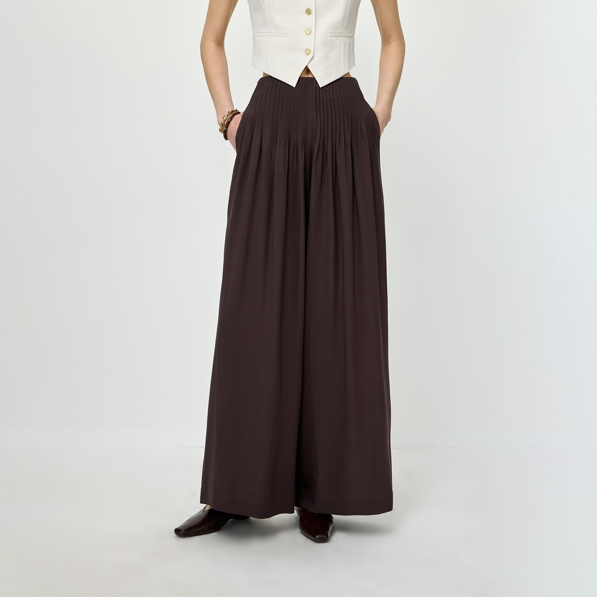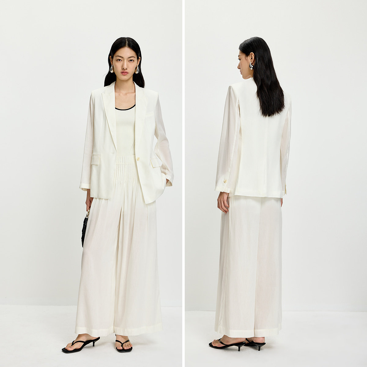 LILY2026夏新款女装莱赛尔苎麻混纺简约松弛感休闲通勤白色阔腿裤