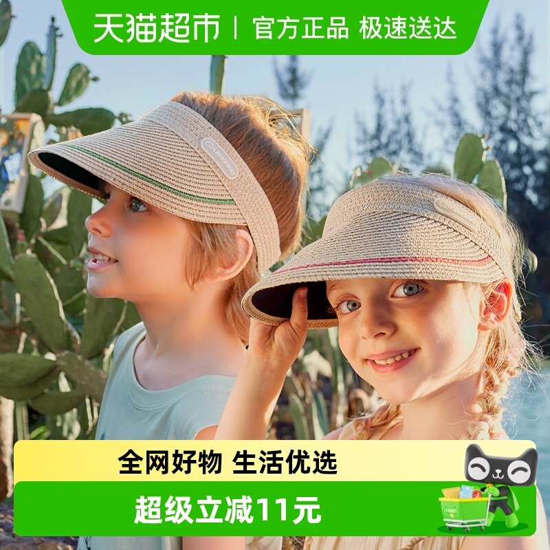 柠檬宝宝儿童防晒帽宝宝遮阳帽防紫外线男女童夏季空顶大帽檐草帽