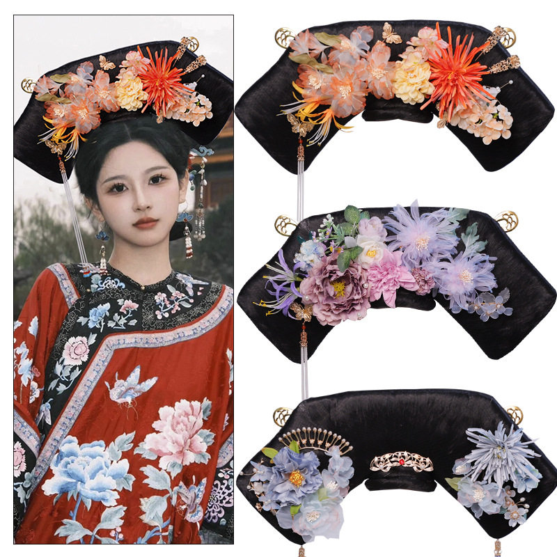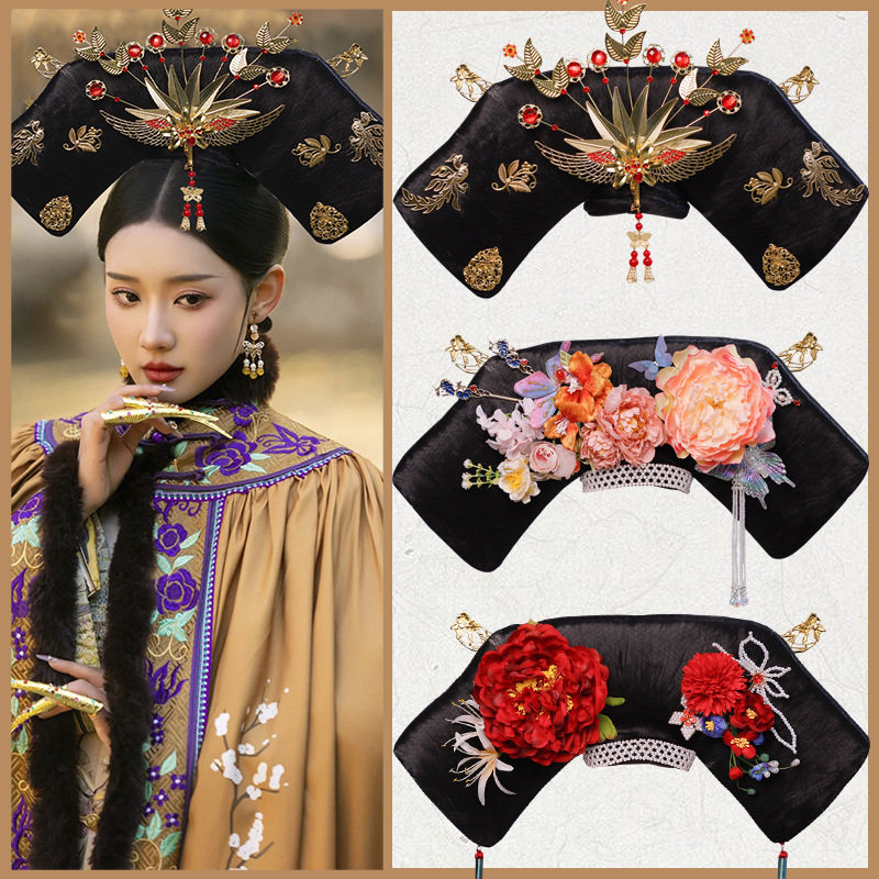 满族宫廷演出COS假发写真发饰清朝格格旗头嫔妃贵妃福晋故宫头饰