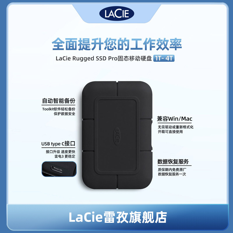 雷孜LaCie移动固态硬盘1t高速2t莱斯外置雷电防摔ssd莱斯大容量4t