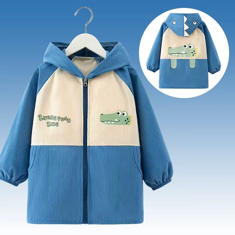 儿童防水正穿衣秋冬长袖拉链护衣大童加大码正穿衣罩衫围裙冲锋衣