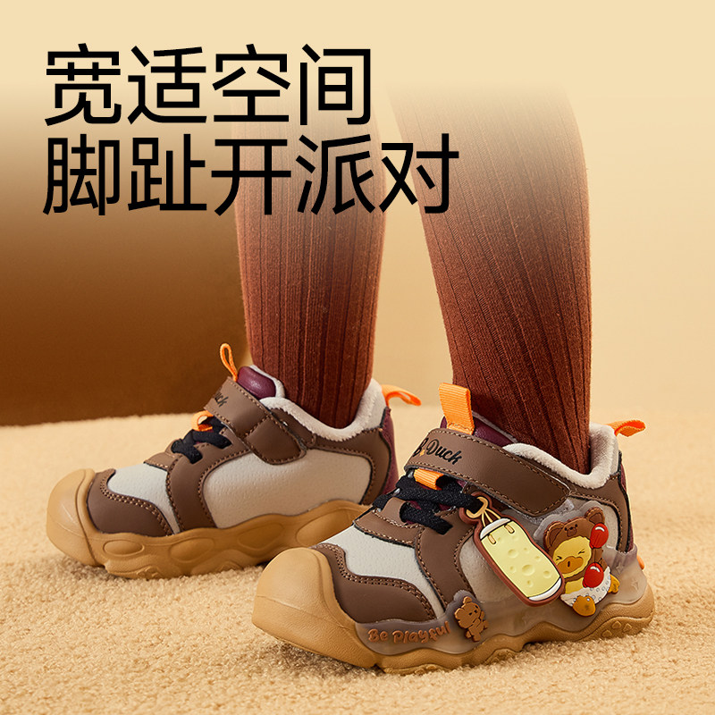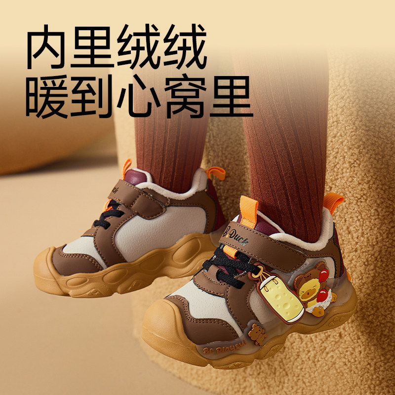 小黄鸭童鞋儿童轻户外运动鞋2025冬季新款男童学步鞋缓震加绒保暖