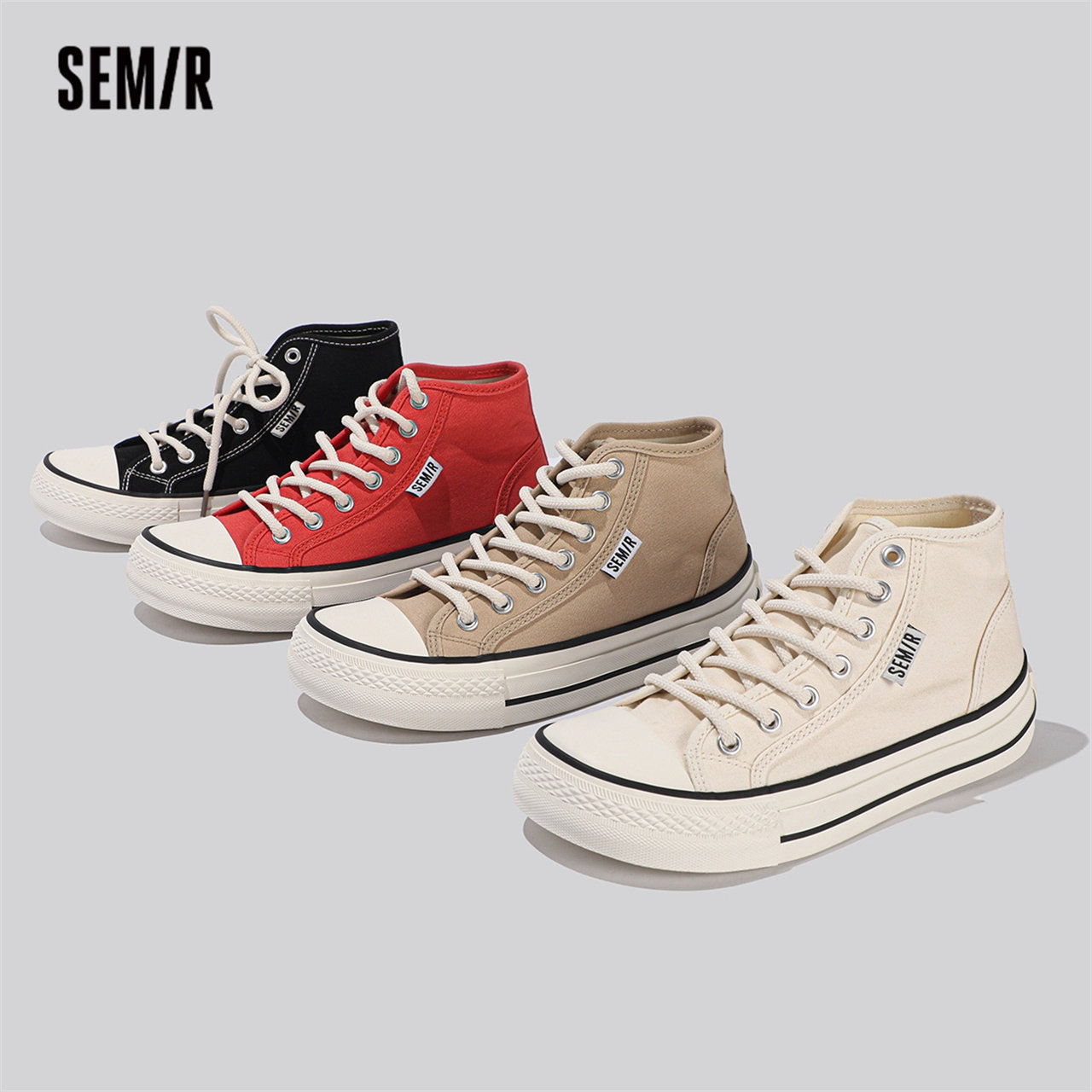 Semir帆布鞋2025秋冬季透气高帮鞋子小白鞋小众运动休闲鞋板鞋