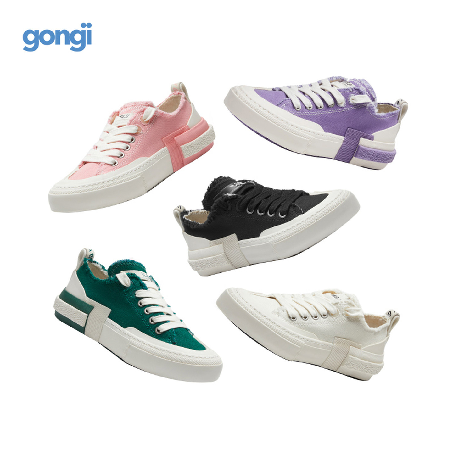 【张艺兴同款】GONGJI帆布鞋女鞋原创小众休闲做旧小白鞋百搭板鞋