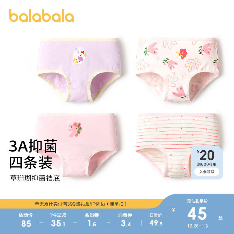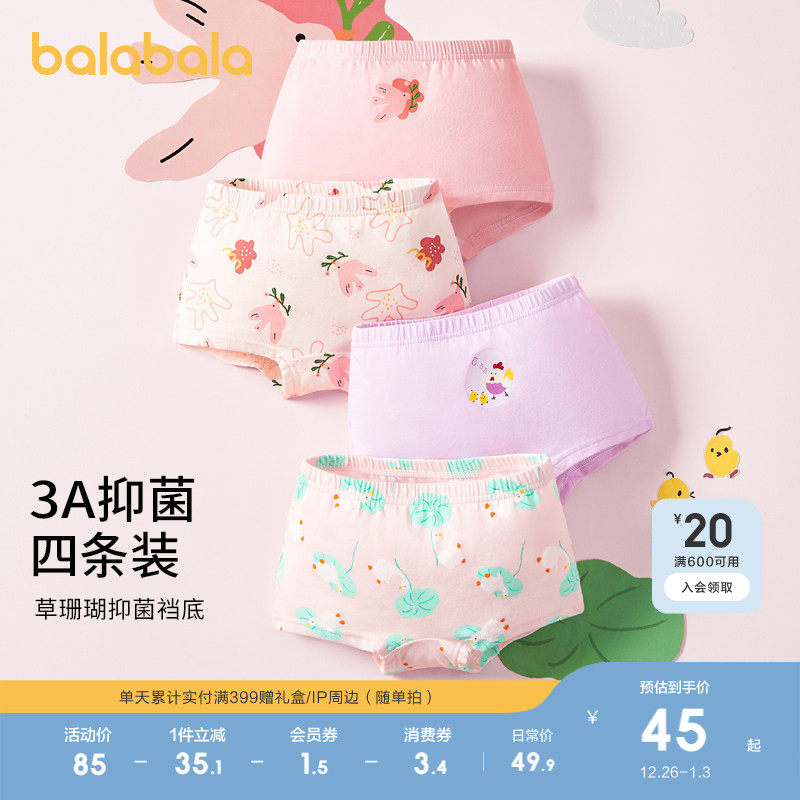 巴拉巴拉女童内裤四角短裤儿童平角裤大童小童宝宝三角裤棉四条装