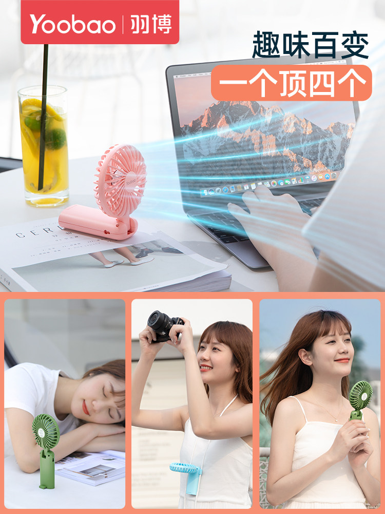 羽博小风扇便携式随身小型风扇迷你手持风扇usb手拿电动充电电风扇夏天桌面宿舍学生手持小风扇便携挂脖风扇
