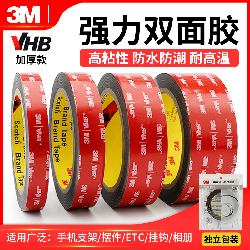 3M双面胶强力高粘度不留痕墙面固定无痕5952泡棉海绵胶带加长厚汽车雨眉迎宾汽车身窗饰条防水耐高温两面胶带