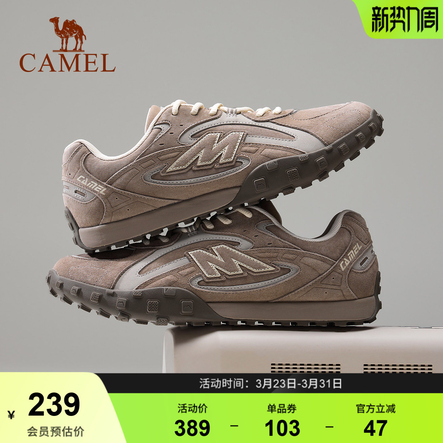 骆驼山川德训鞋男2026春季新款运动鞋低帮复古休闲防滑舒适板鞋